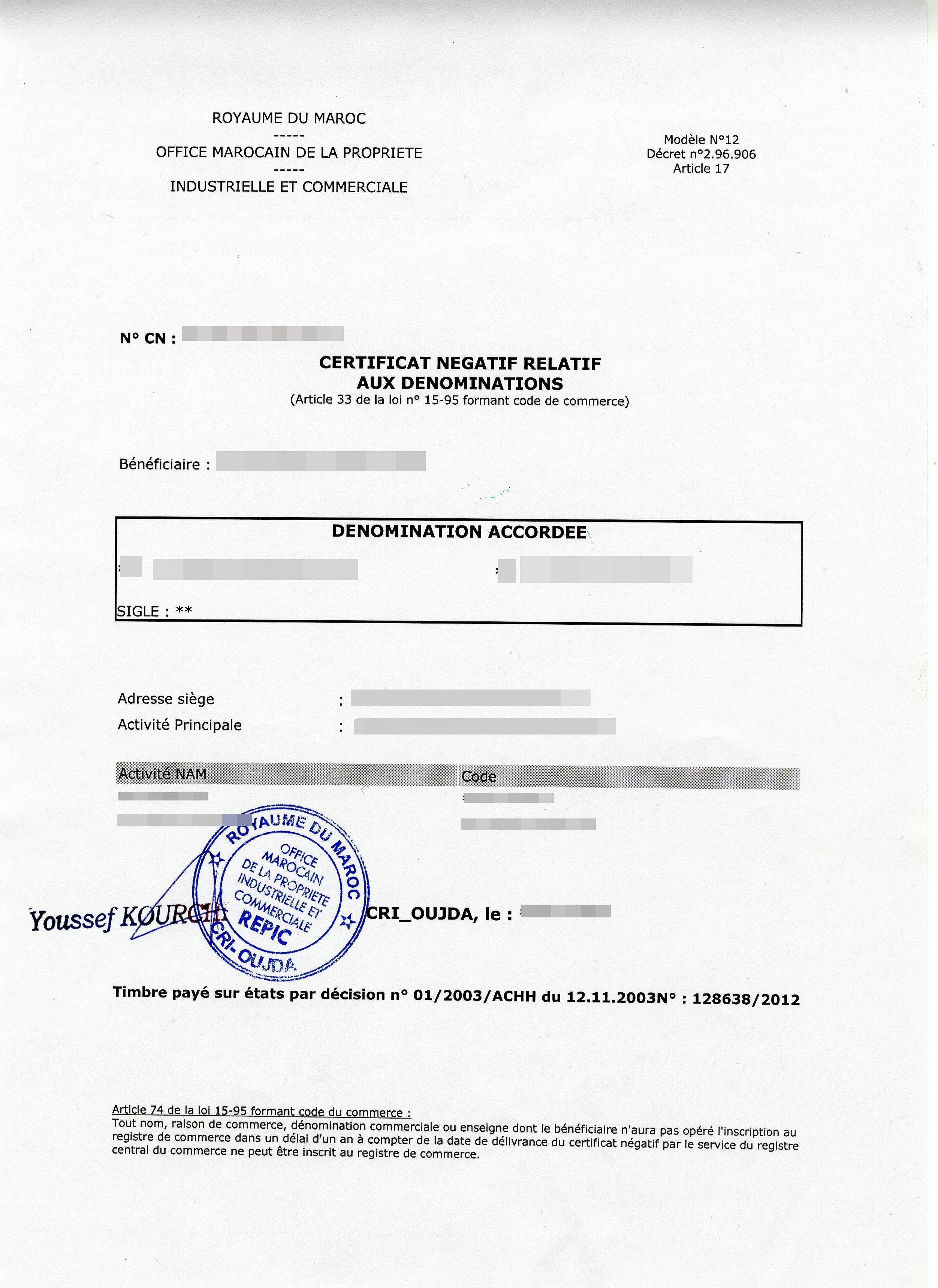 document type goToLink Le certificat négatif copier