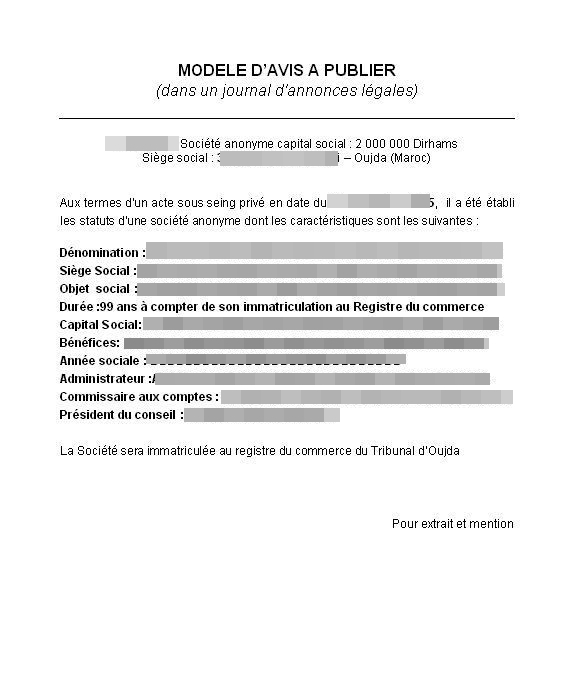 document type goToLink Modèle d'avis au jornal d'annonces légales